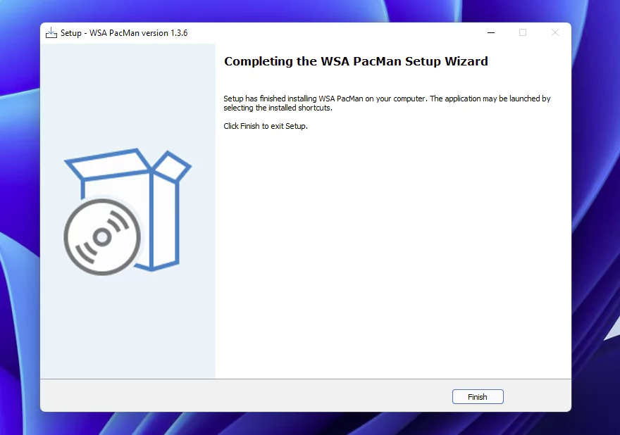 Once you have Amazon Appstore installed on your computer, you can install wsa_pacman, a GUI package manager and package installer for Windows Subsystem for Android (WSA). When Amazon Appstore stops working, you can still double click on any APKs to install Android apps.