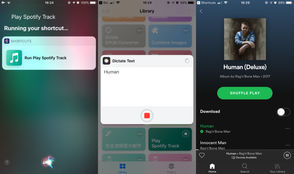 That’s all the setup. From now on, you can activate Siri and say “Play Spotify Track” to run this shortcut. Then you can speak a Spotify song name and Spotify will play the song automatically.