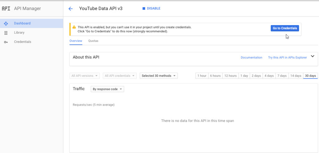 Step 4. Next click on the blue ‘Go to Credentials’ button to the right.