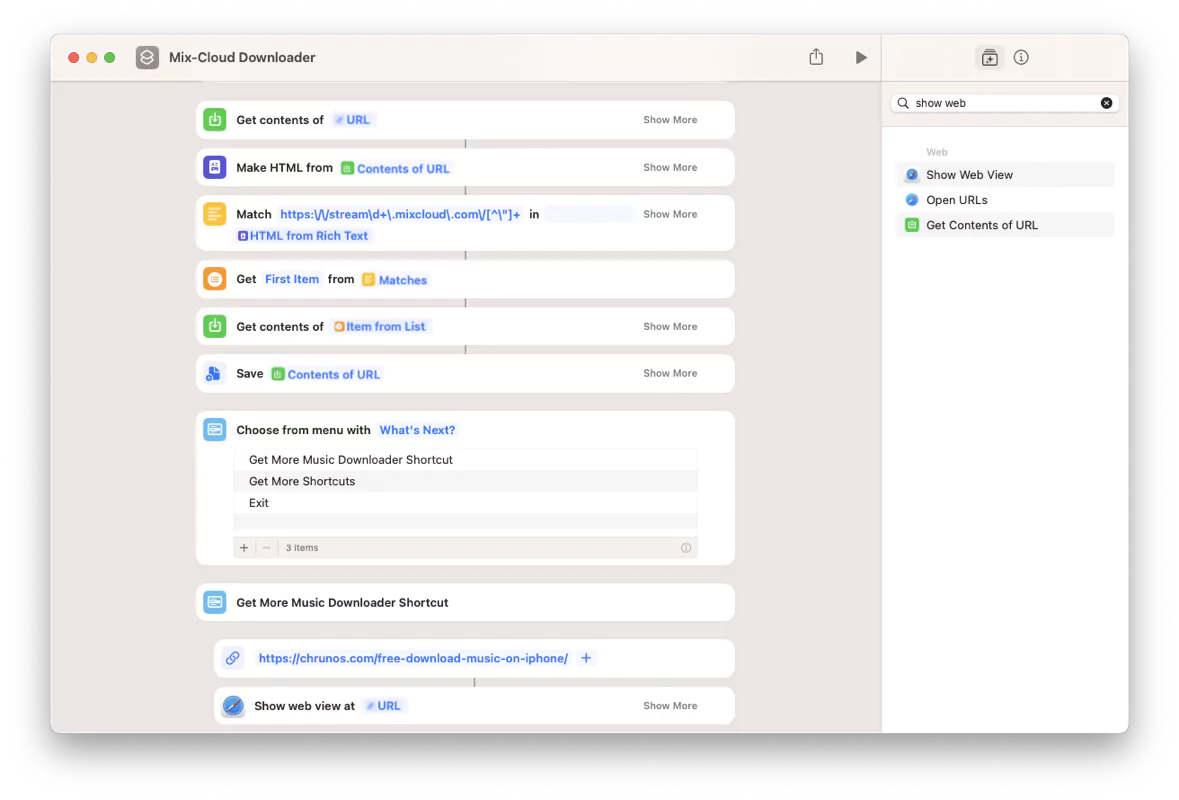 The Shortcuts app is a built-in app on iPhone, iPad, or Mac. If you use MixCloud, you can simply get this shortcut to download music from MixCloud for free.