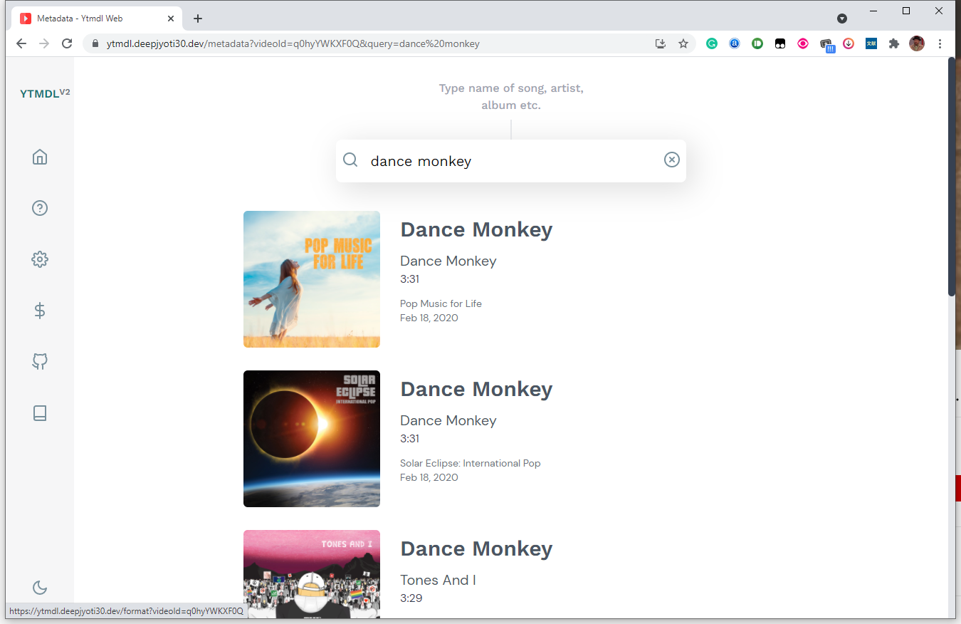 YTIZ is an open-source project that allows you to download songs from YouTube, SoundCloud, Bandcamp with metadata. The metadata are embedded from various sources like iTunes, Gaana, LastFM, etc. You can enter a YouTube URL to start downloading.