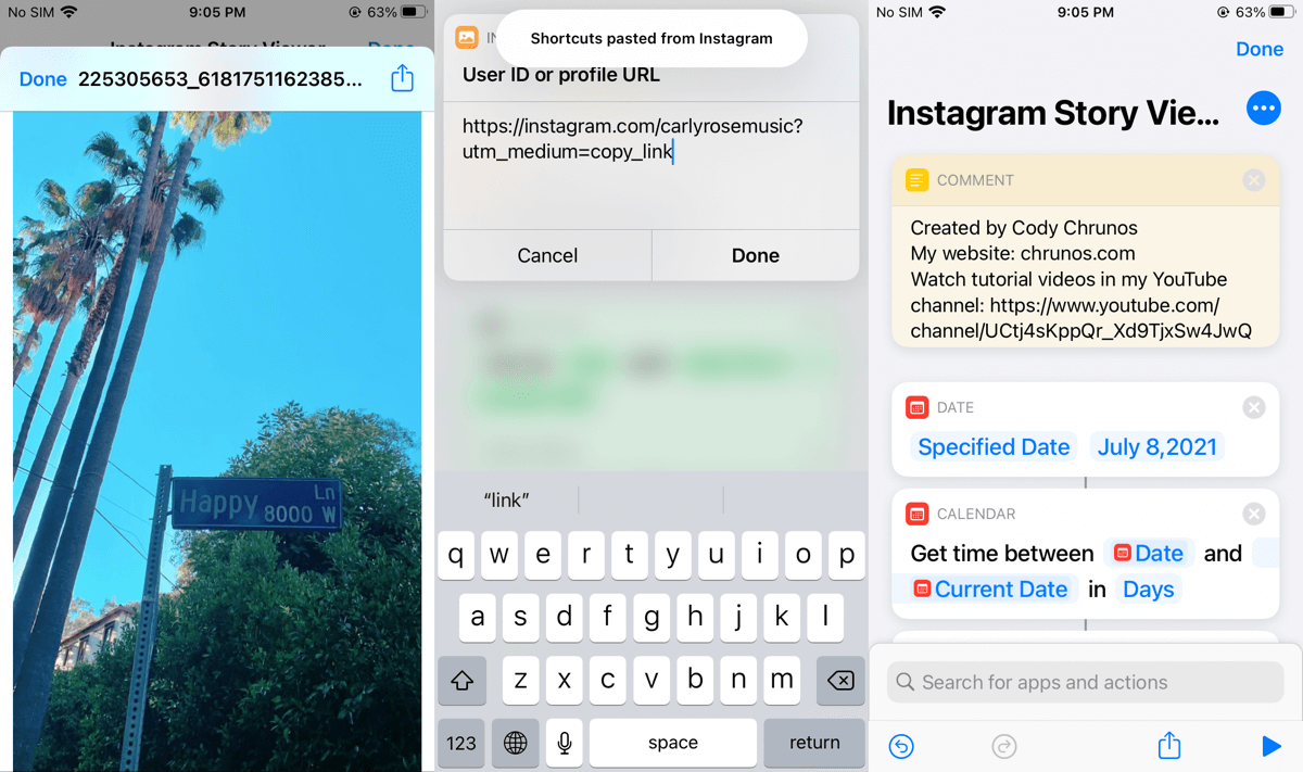 Once you get the shortcut, just run this shortcut, and then you will be prompted to enter the username. If you copy the Instagram profile URL and run the shortcut, you will not be prompted. The shortcut will display all the available stories from this profile and give you a quick preview.